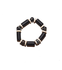 Nile Black and White Bone and Wood Bracelet