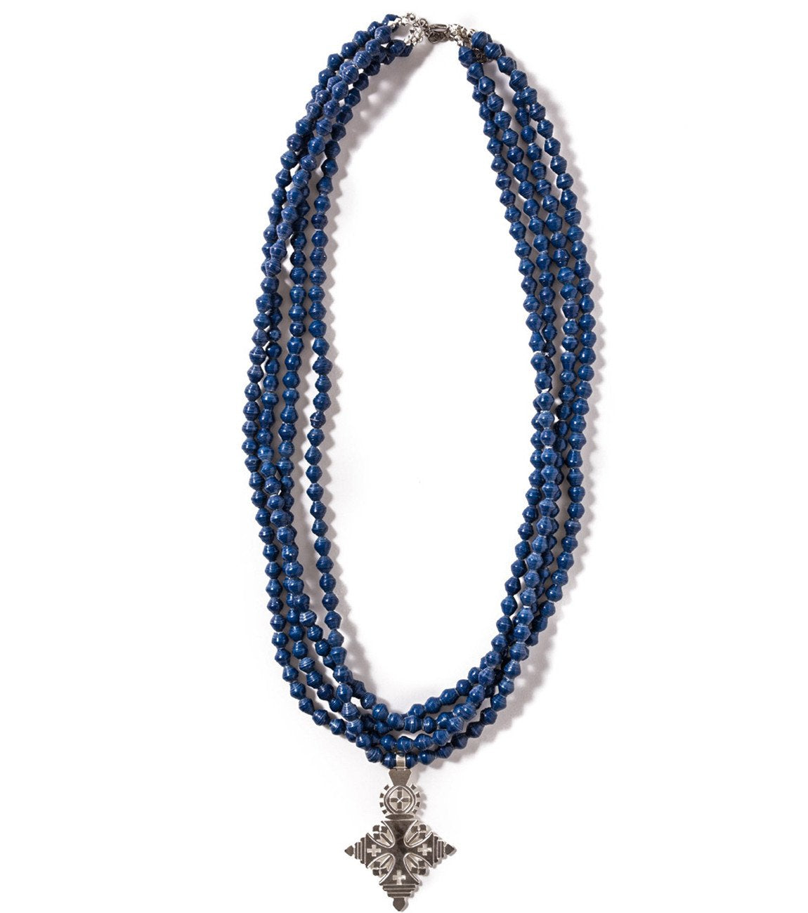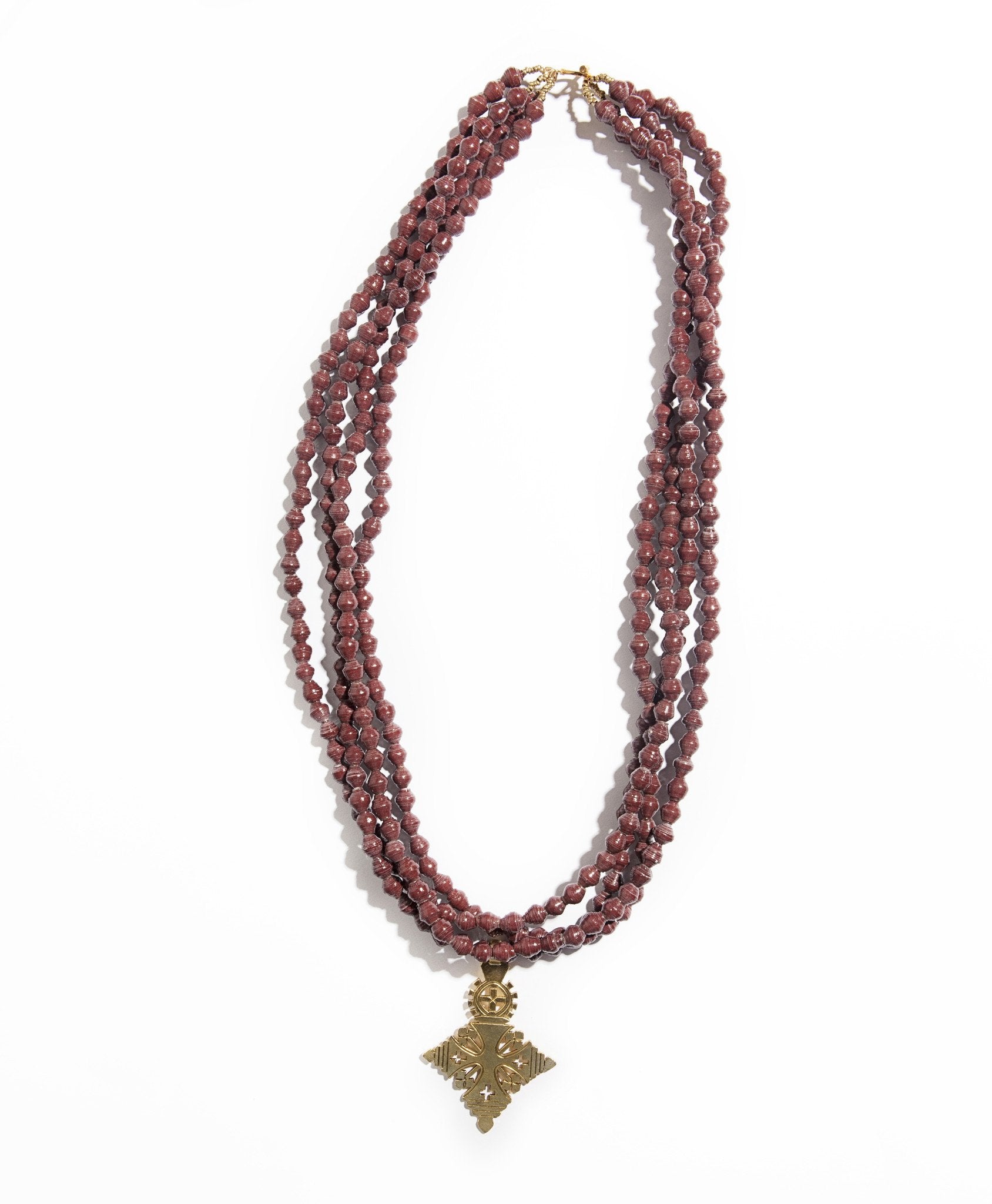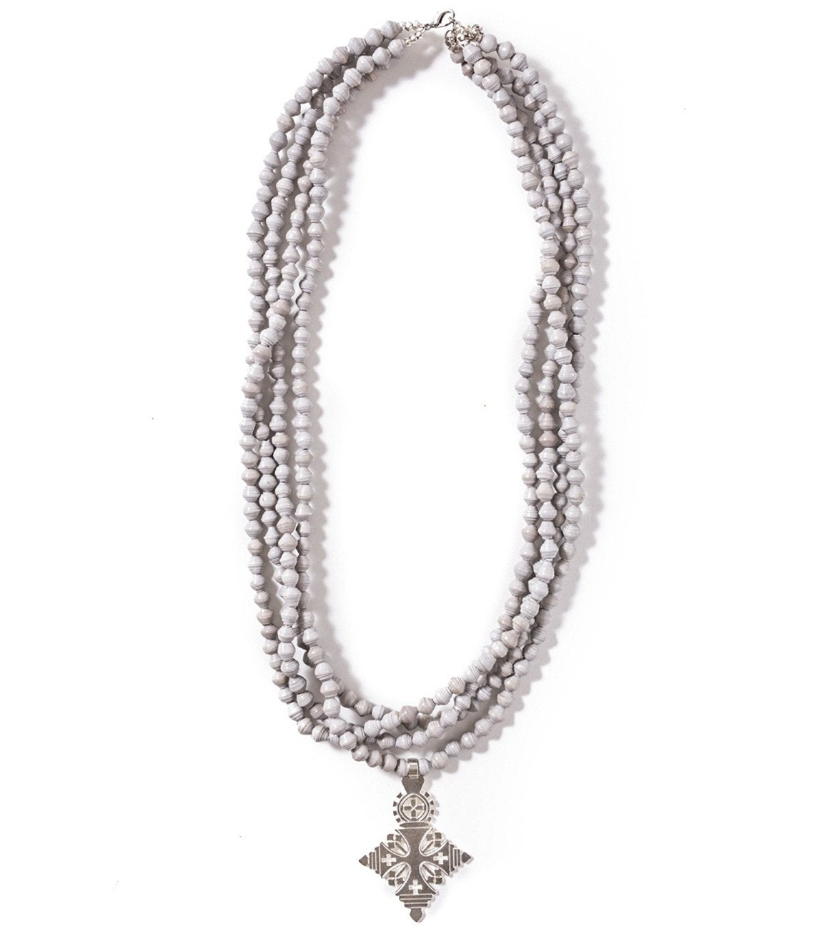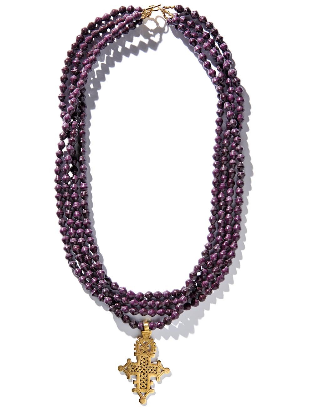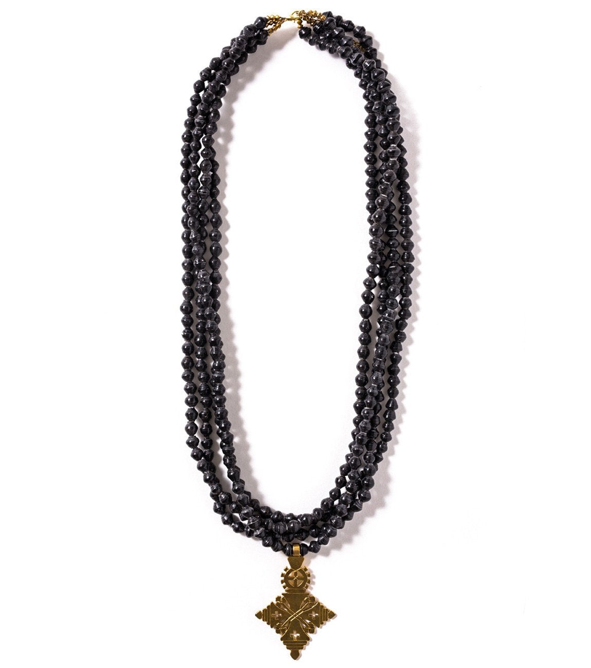 • Four strands of hand-rolled Karatasi paper beads, finished with a star shaped pendant inspired by the coptic designs of Ethiopia. The Demi necklace is one of Akola's iconic pieces and has become a symbol that is synonymous with our mission.