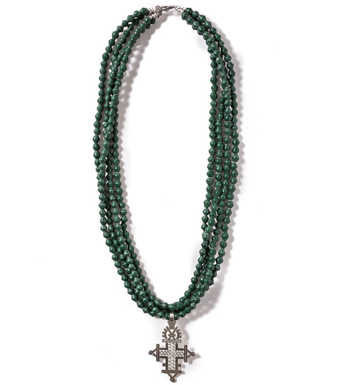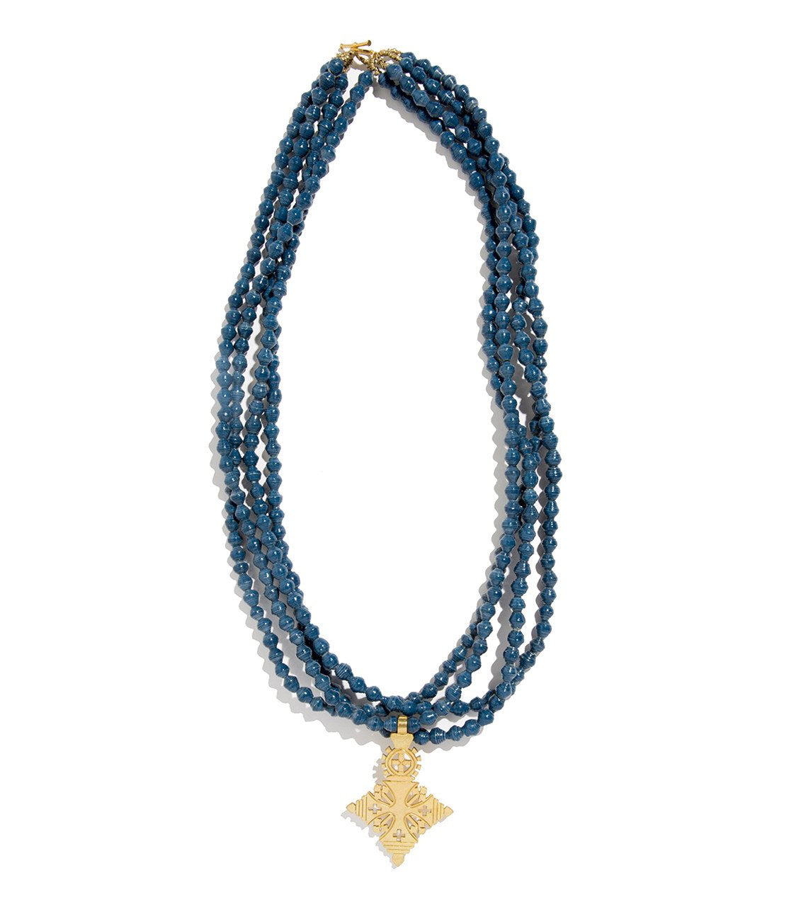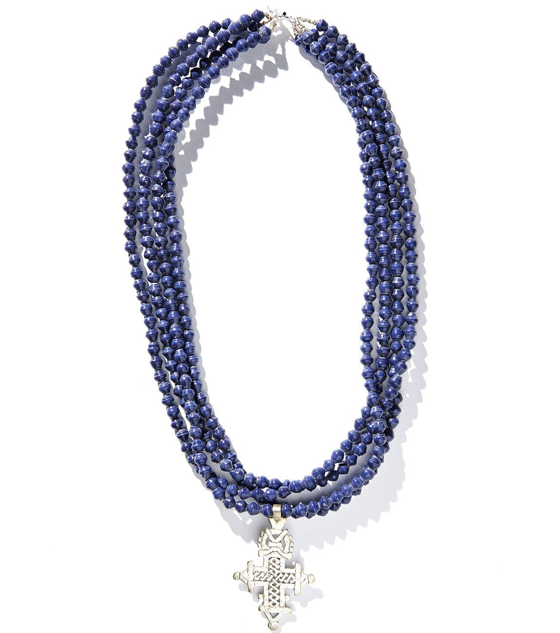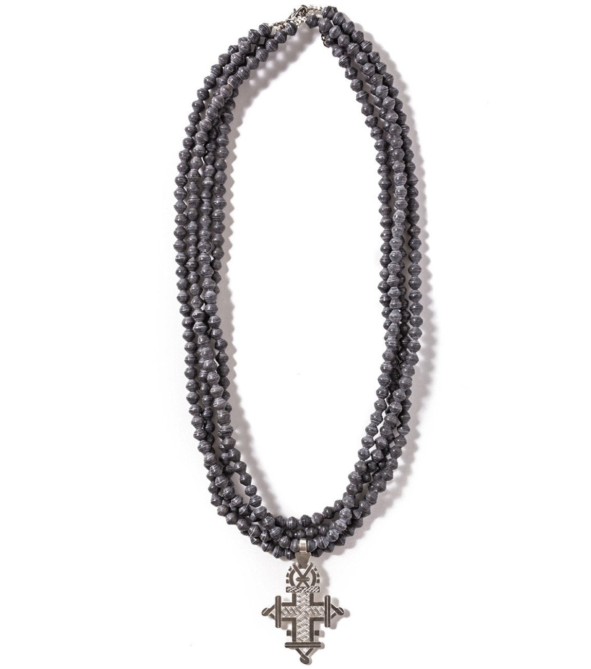• Four strands of hand-rolled Karatasi paper beads, finished with a star shaped pendant inspired by the coptic designs of Ethiopia. The Demi necklace is one of Akola's iconic pieces and has become a symbol that is synonymous with our mission.