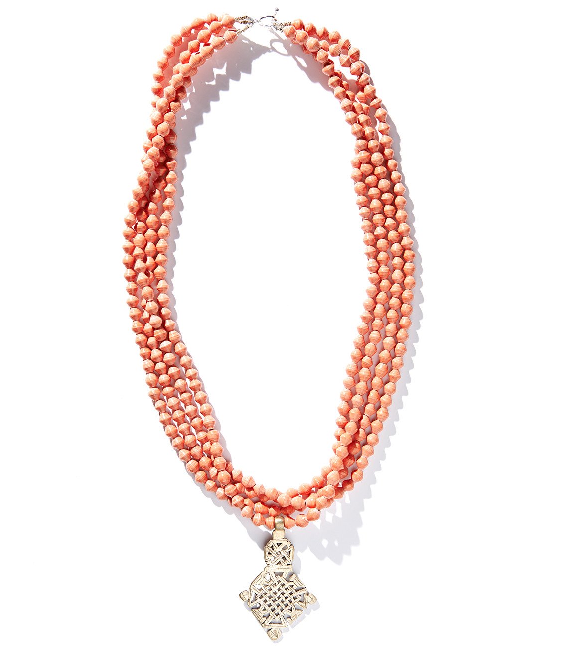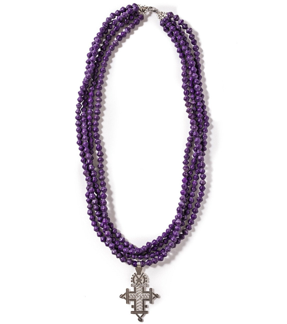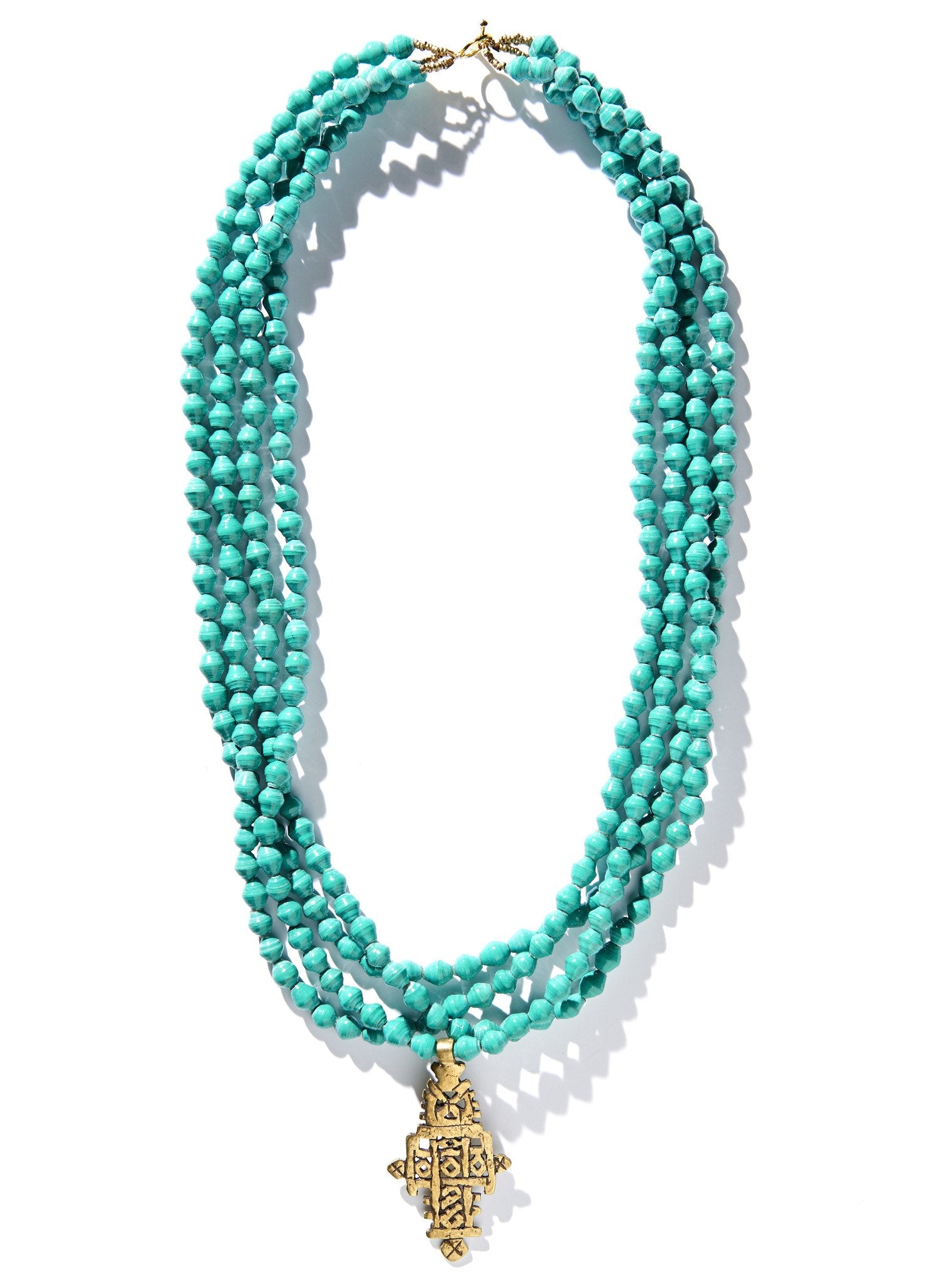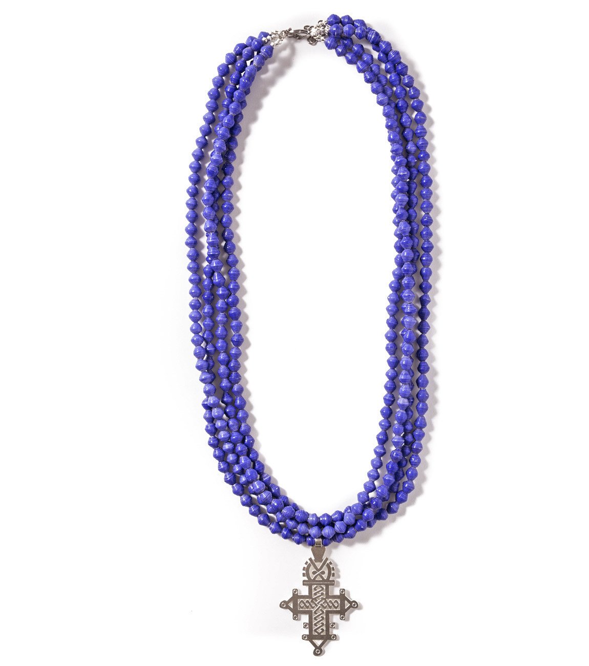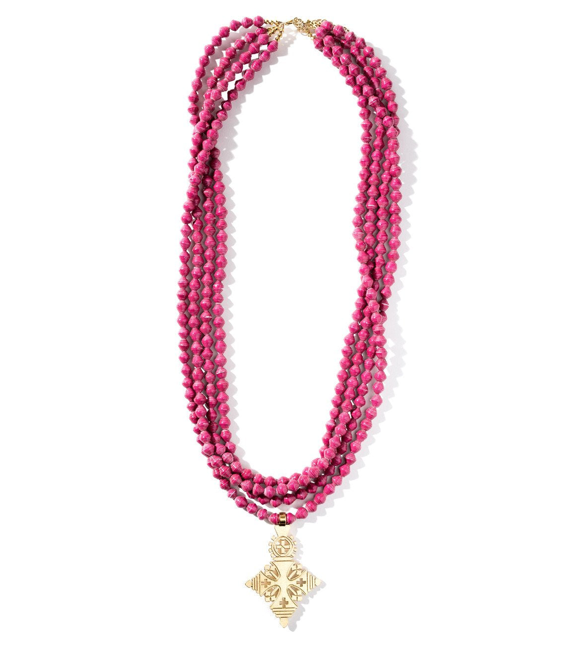 • Four strands of hand-rolled Karatasi paper beads, finished with a star shaped pendant inspired by the coptic designs of Ethiopia. The Demi necklace is one of Akola's iconic pieces and has become a symbol that is synonymous with our mission.