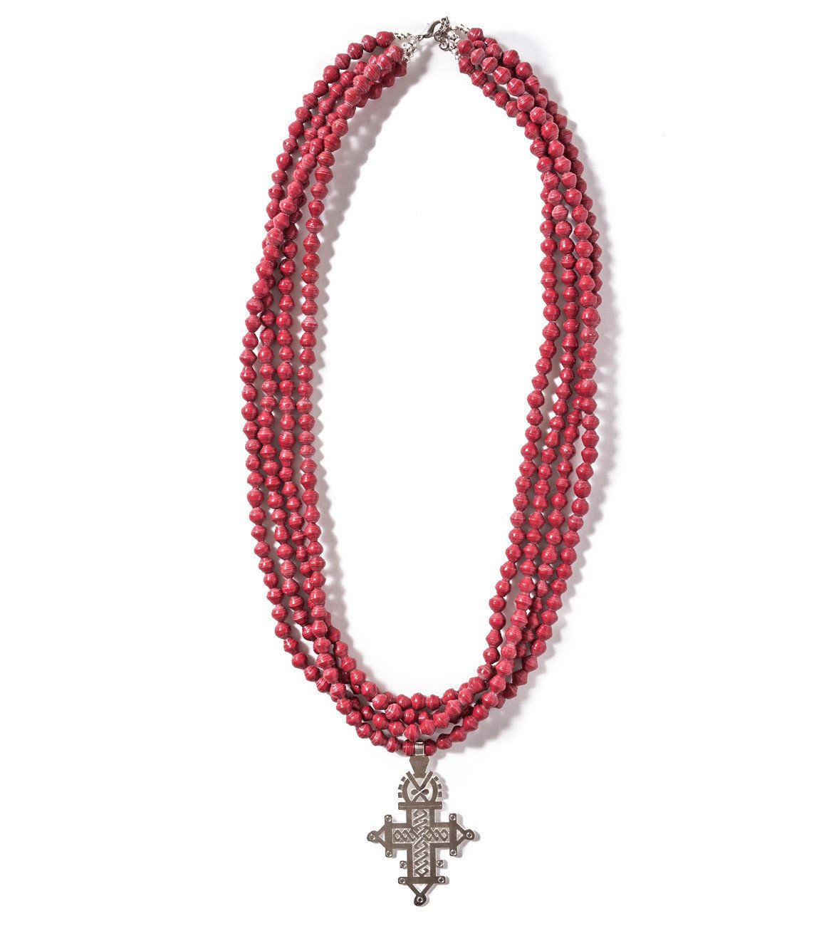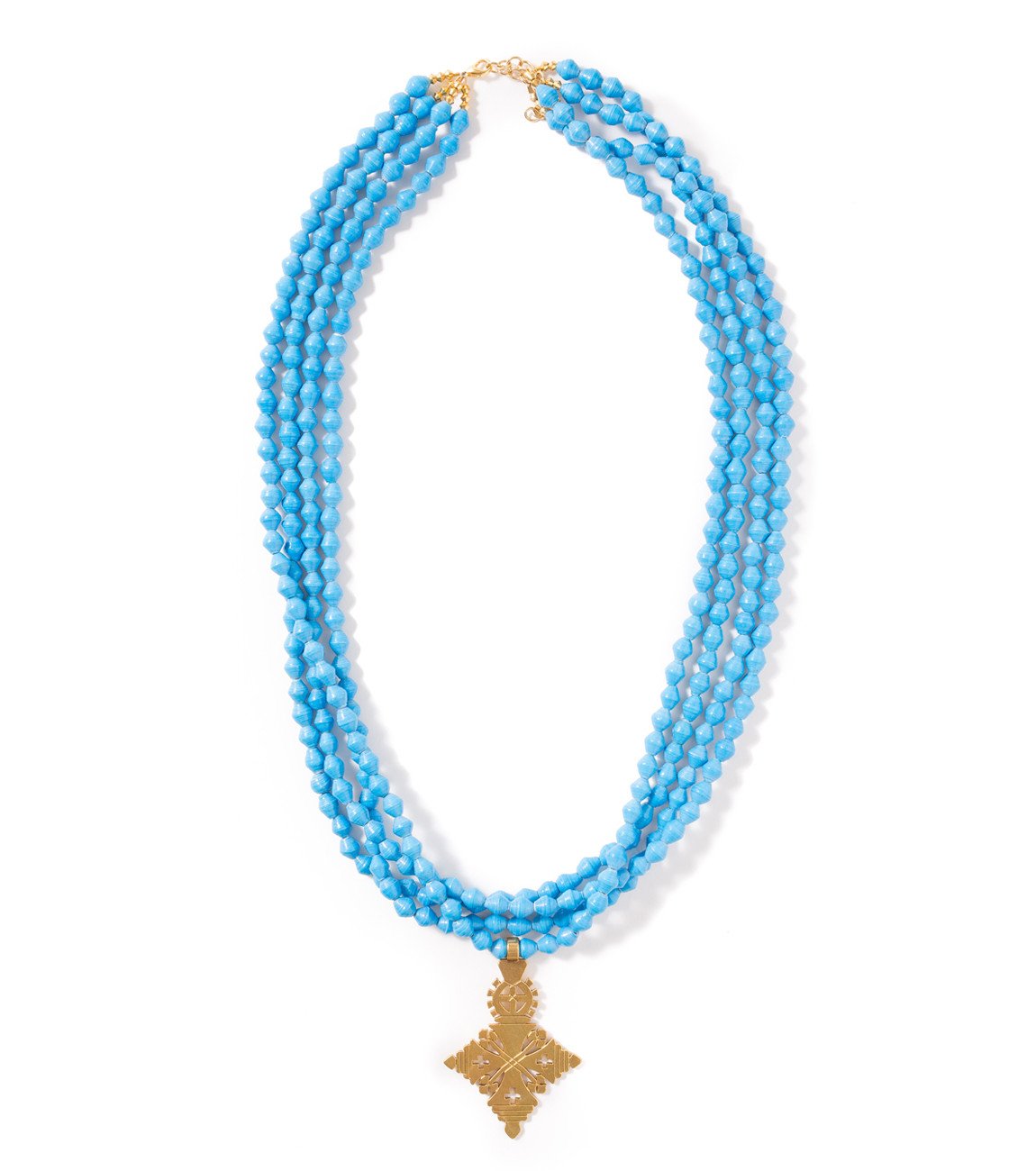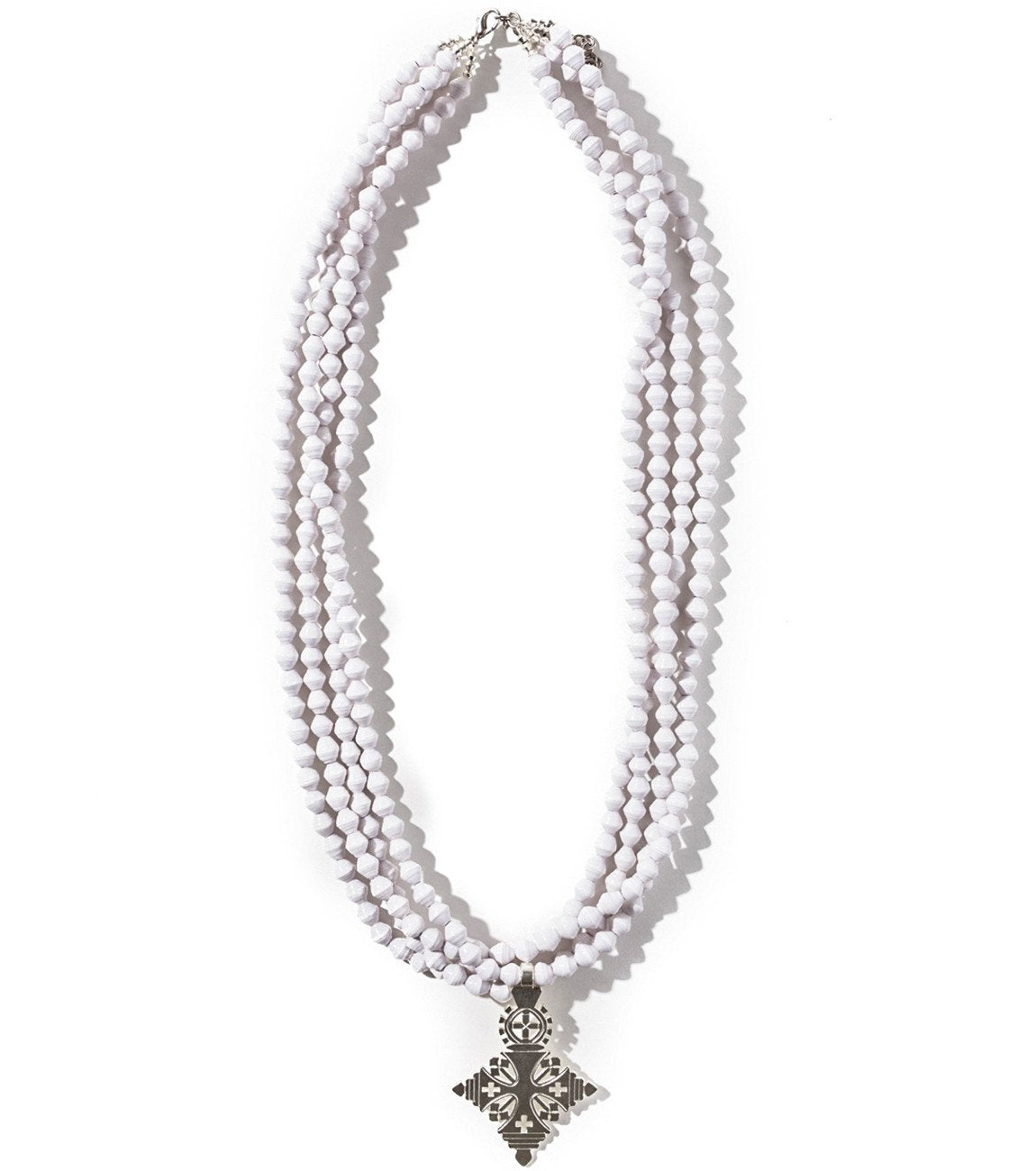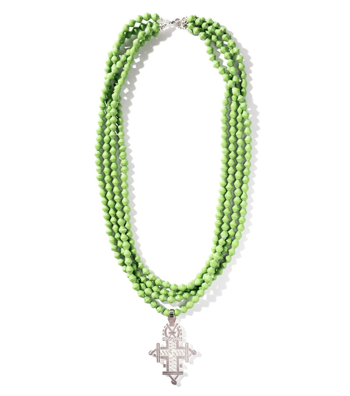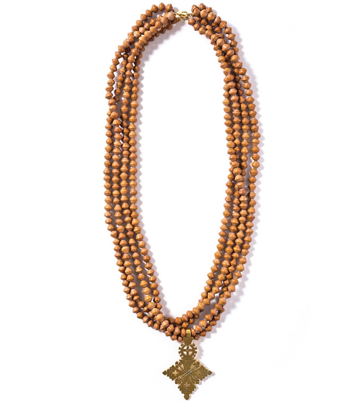 • Four strands of hand-rolled Karatasi paper beads, finished with a star shaped pendant inspired by the coptic designs of Ethiopia. The Demi necklace is one of Akola's iconic pieces and has become a symbol that is synonymous with our mission.
