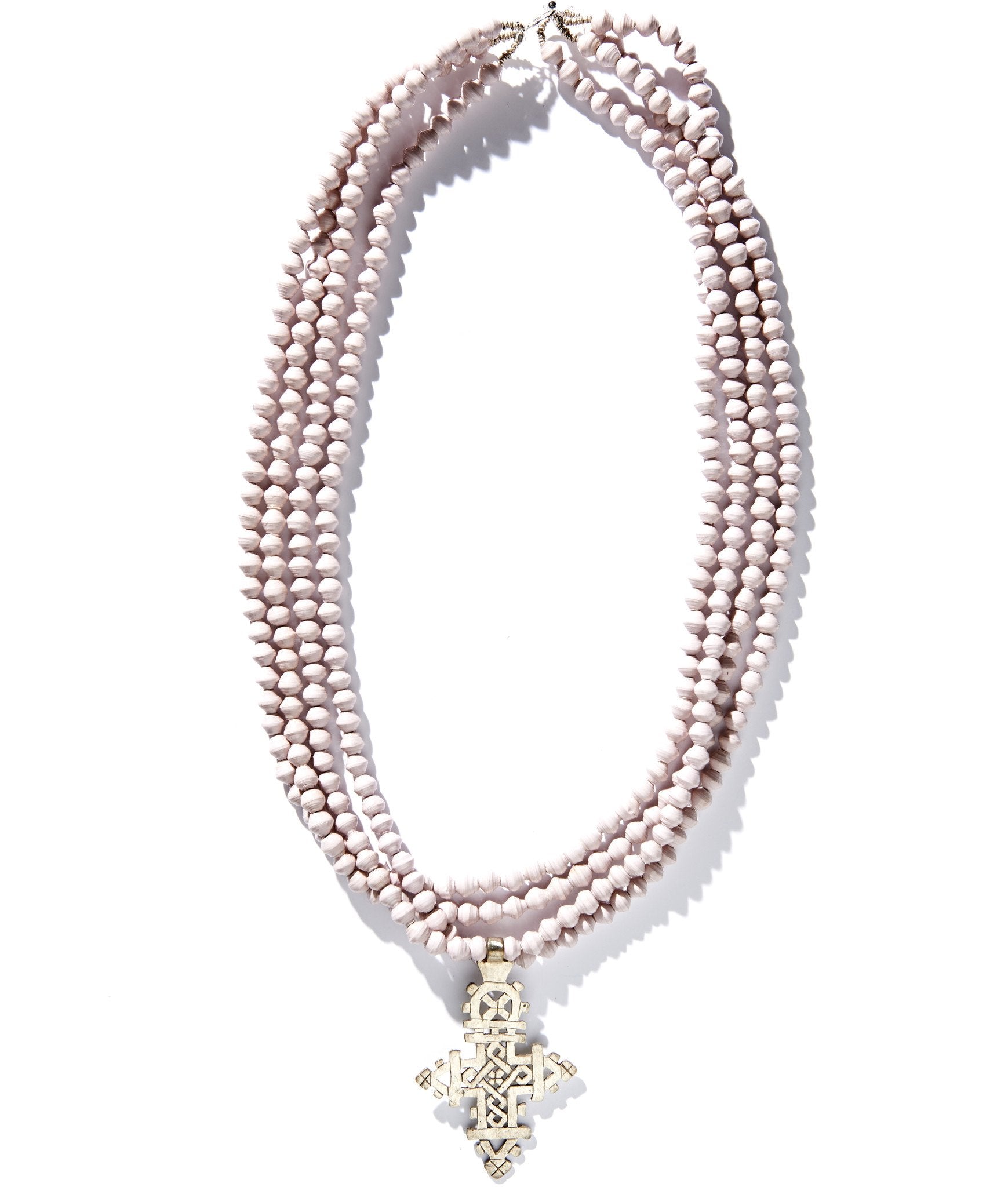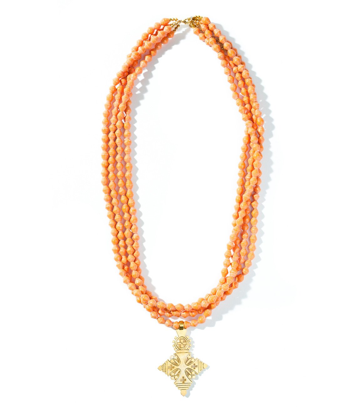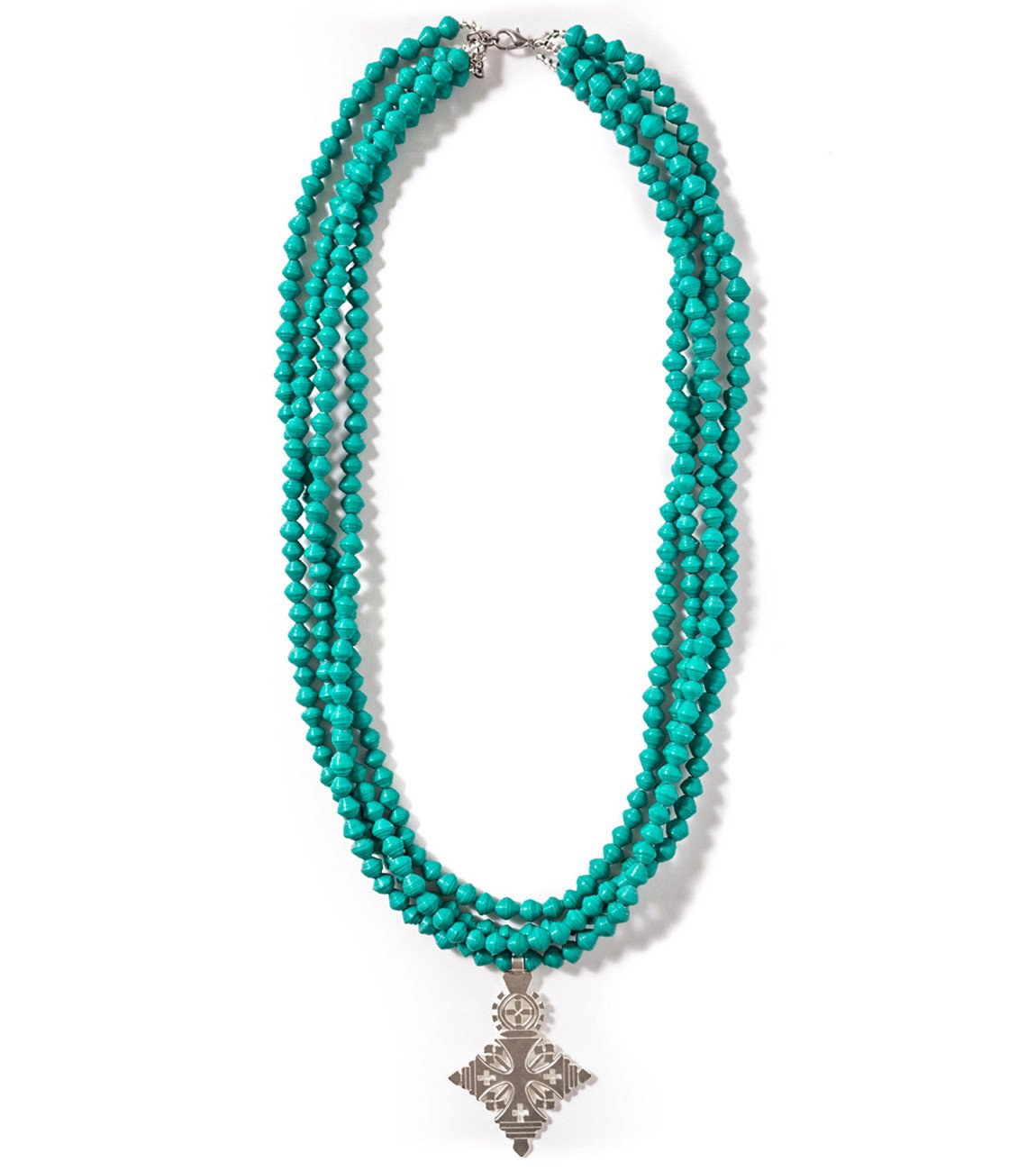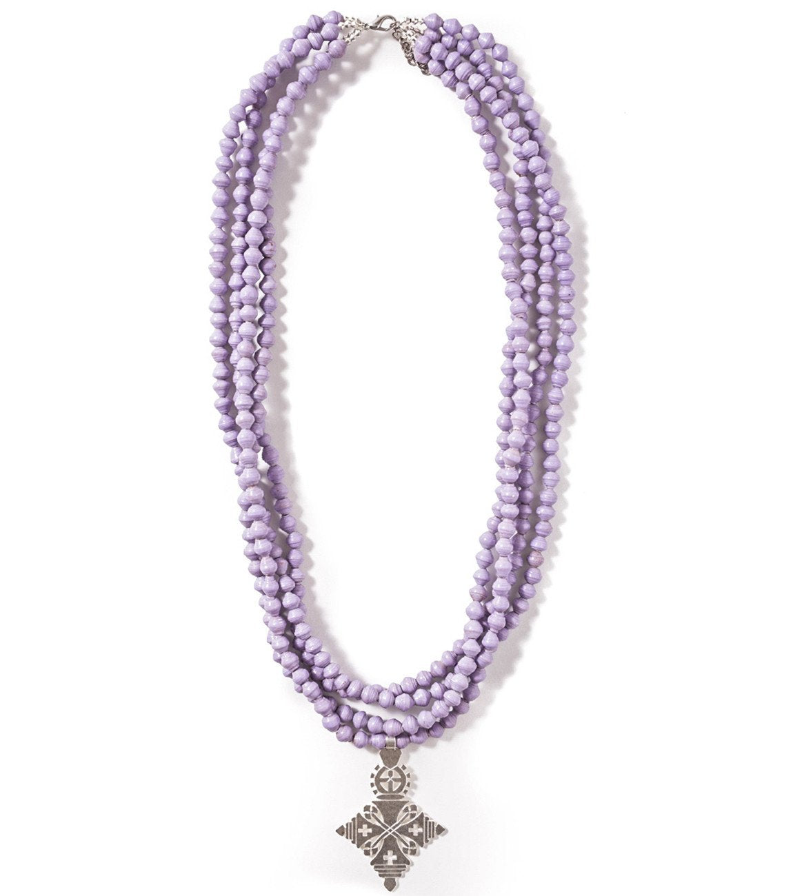 • Four strands of hand-rolled Karatasi paper beads, finished with a star shaped pendant inspired by the coptic designs of Ethiopia. The Demi necklace is one of Akola's iconic pieces and has become a symbol that is synonymous with our mission.