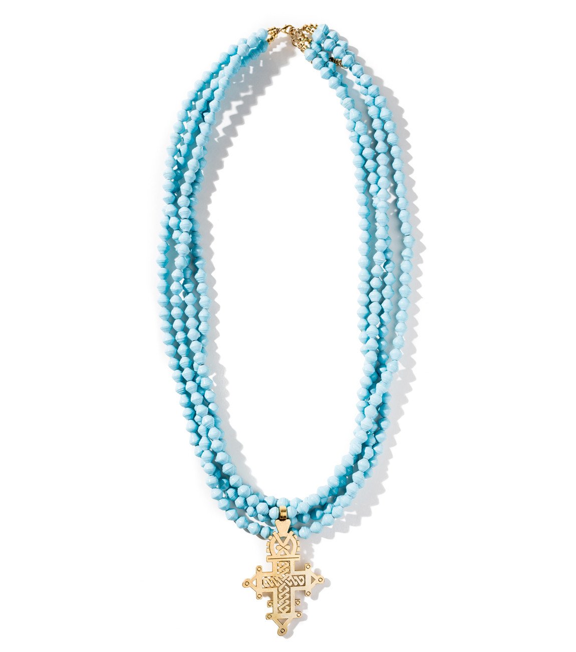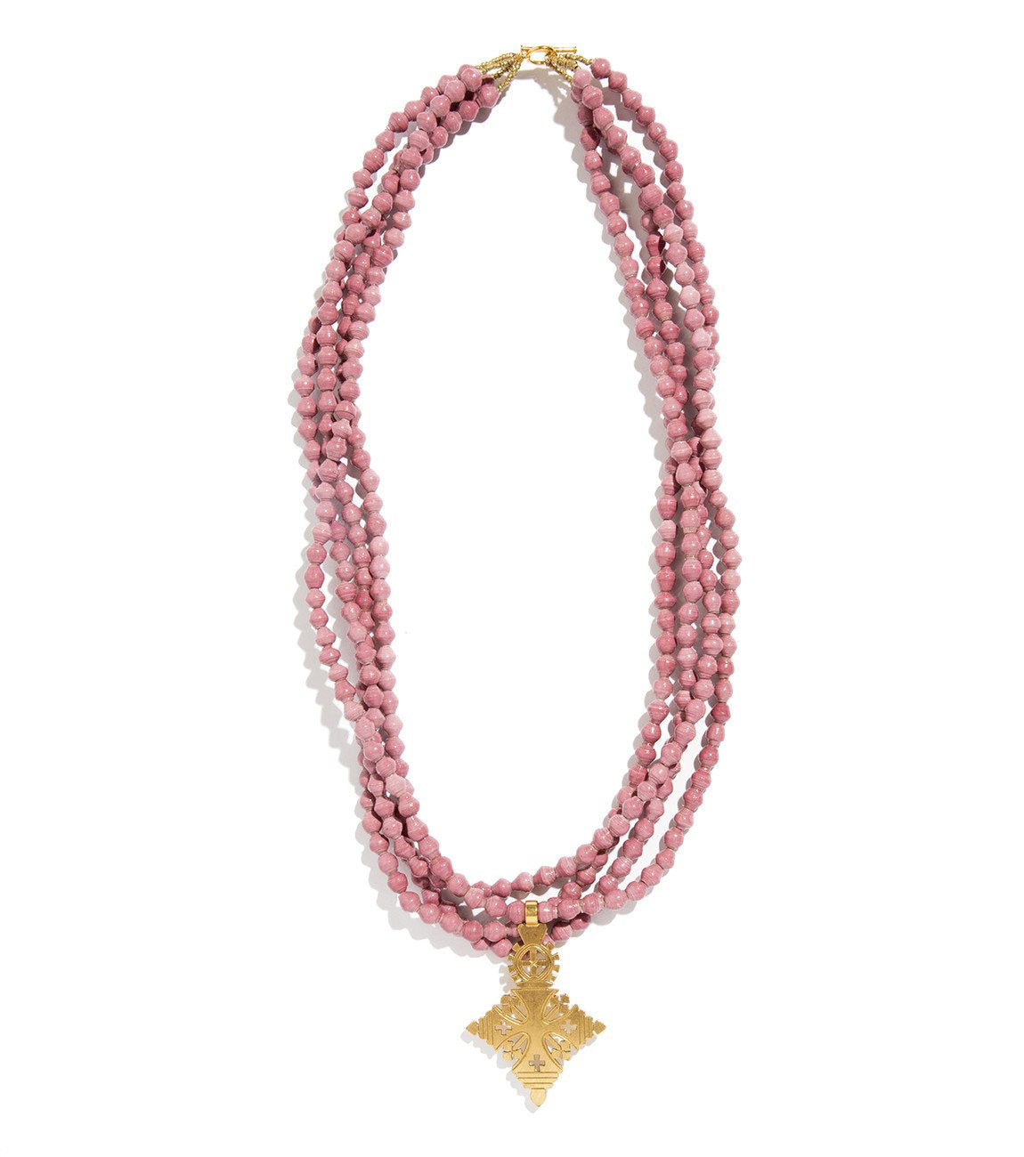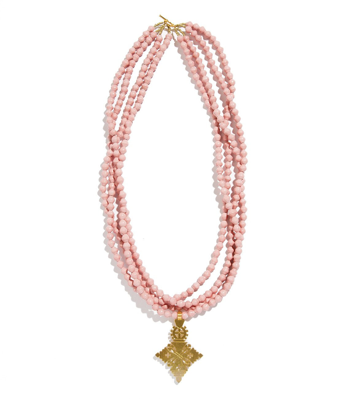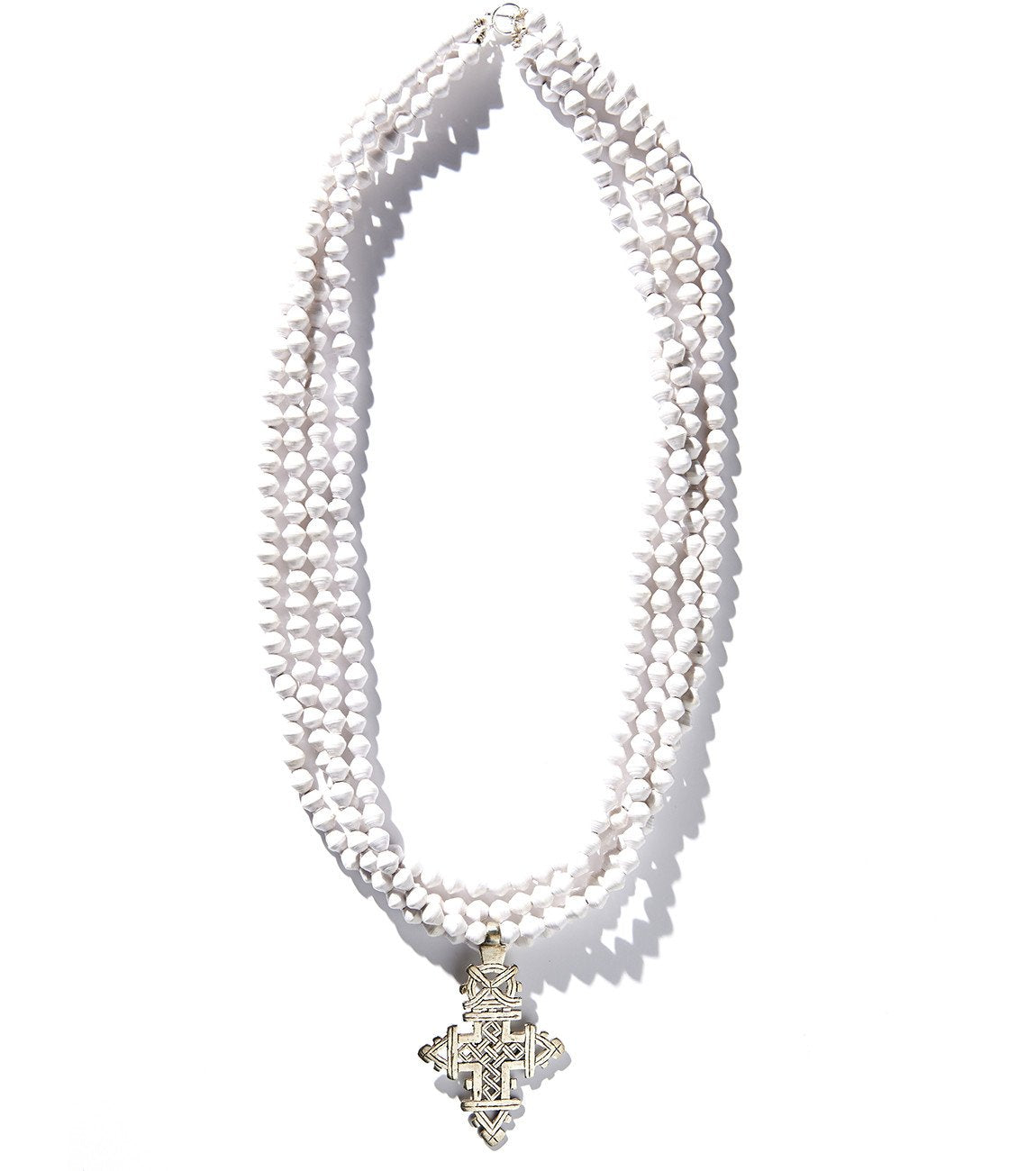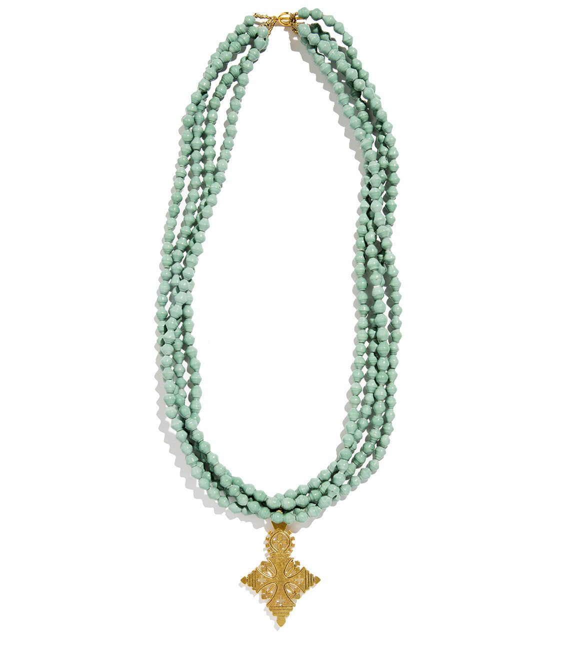 • Four strands of hand-rolled Karatasi paper beads, finished with a star shaped pendant inspired by the coptic designs of Ethiopia. The Demi necklace is one of Akola's iconic pieces and has become a symbol that is synonymous with our mission.