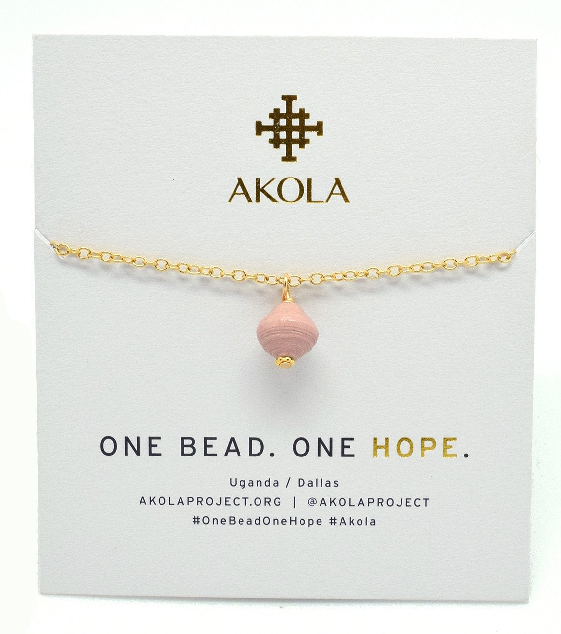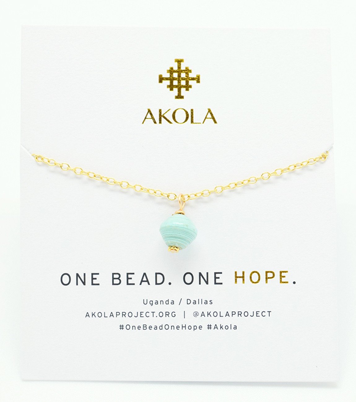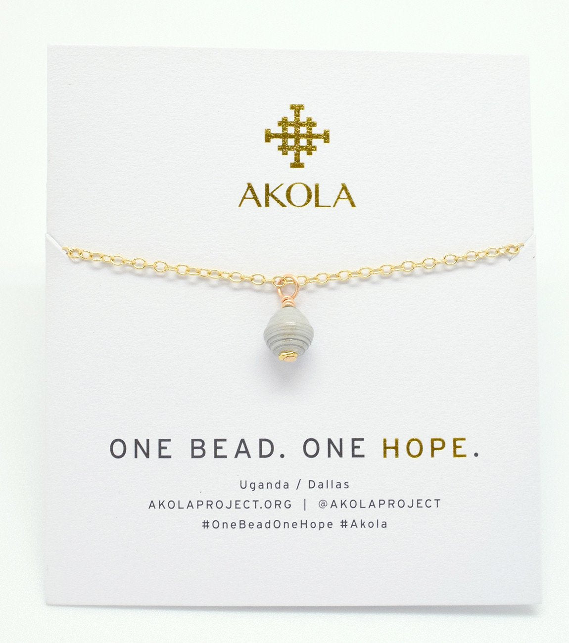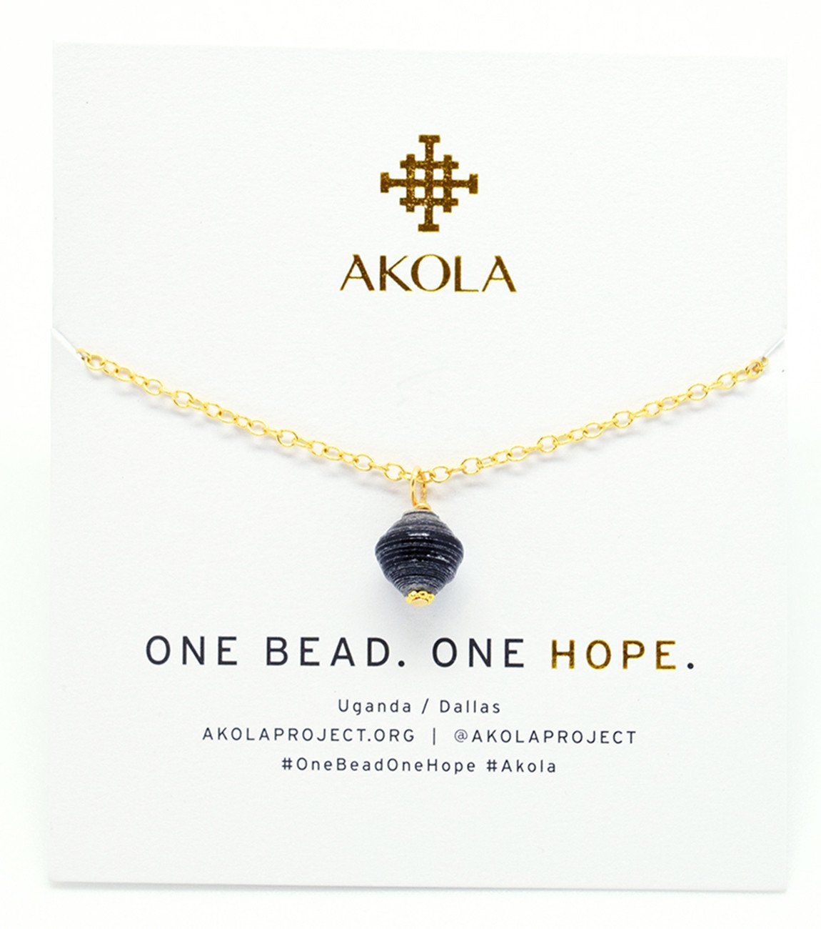 Handcrafted by 1 of 500 Akola women in Uganda and in Dallas. 100% of product revenues are reinvested in the social mission to empower these women to transform their families and communities. Through your purchase, this necklace will provide the income for Akola women to provide the basic needs for their family.