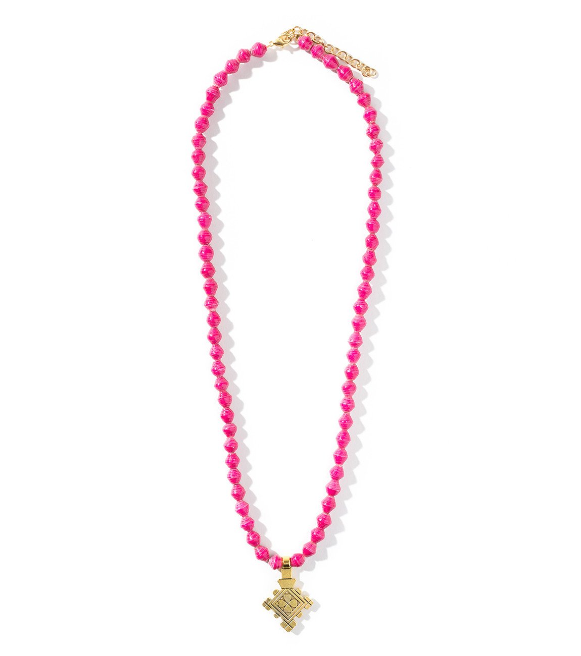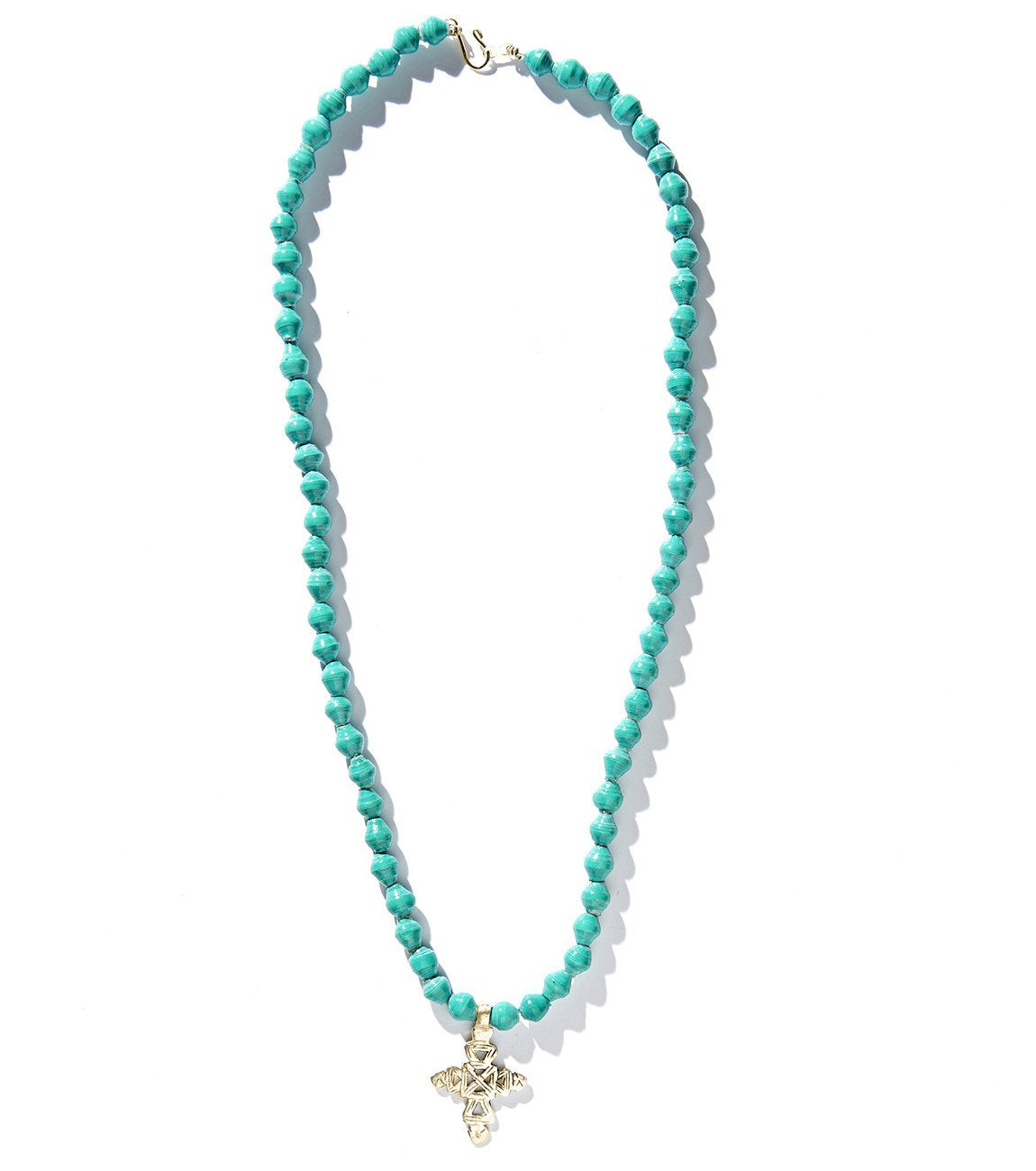 • One strand of hand-rolled Karatasi paper beads accented with a coptic inspired pendant (pendants will vary).